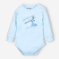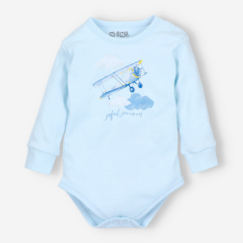 Blue baby bodysuit SAMOLOTS in organic cotton for a boy